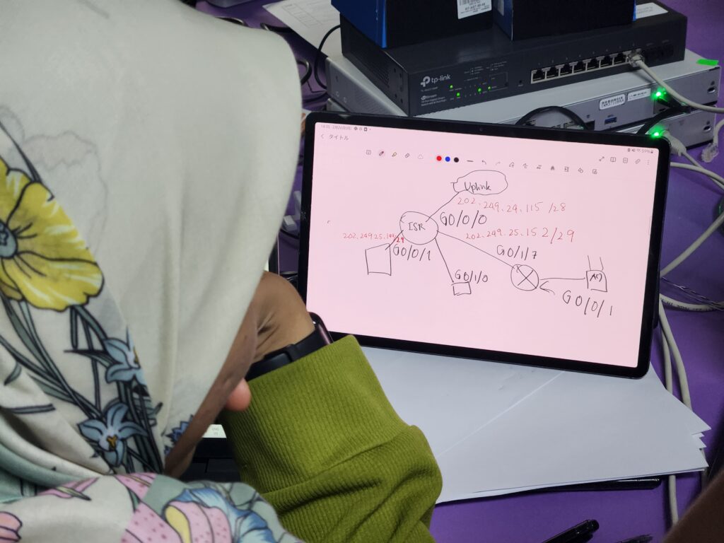 At the APIE Camp, participants were tasked with constructing routers to connect to the Internet using actual global IP addresses (IPv4 and IPv6) within the AI3 network, as well as DNS servers capable of resolving names globally. To extend this environment to any partner universities in Asia, an overlay network utilizing VPN technology was established specifically for the camp. This network was ingeniously designed and constructed by Keio University student Yoshito Kurazumi—affectionately known as “hayabusa”—who had previously contributed as a teaching assistant at the first camp in Japan.