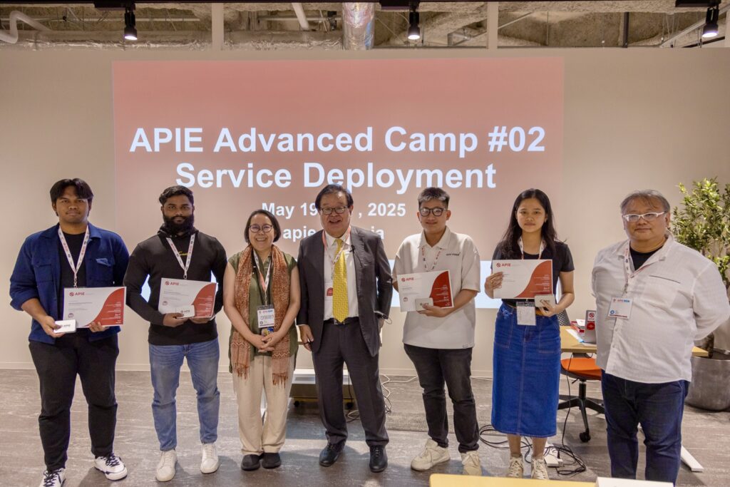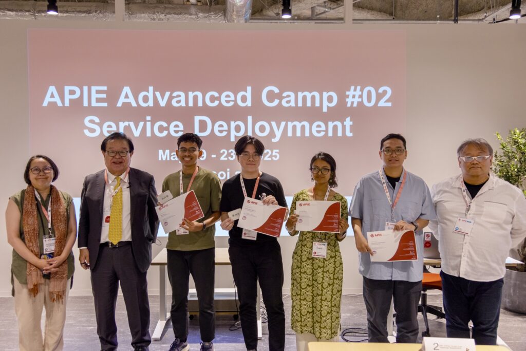 At the conclusion of the camp, Prof. Jun Murai (Keio) handed a certificate of participation to each team member, along with a set of APIE-themed stickers and a USB drive as a small token of appreciation.