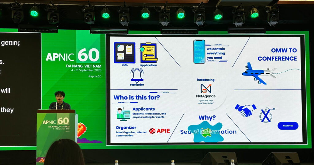 The APIE community came together once again during APNIC 60, held in Da Nang, Vietnam, from September 9 to 12, 2025. This regional conference brought together Internet professionals, researchers, and community builders from across the Asia Pacific — and it became a special moment of reunion for APIE alumni and mentors.