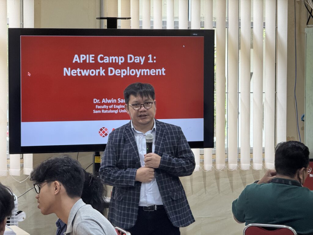 The camp opened with greetings from the Dean of the Faculty of Engineering at UNSRAT, Prof. Fabian Manoppo, followed by the Lead of the APIE Program, Noriatsu Kudo (Keio University), and Research and Education Development Officer, Marcos Sadao Maekawa (APNIC Foundation).
