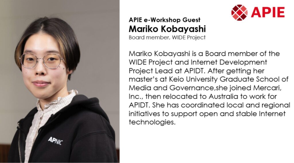 - Mariko Kobayashi (APIDT, WIDE Project), who introduced the fundamentals of Internet governance and highlighted how young professionals can engage in shaping the Internet